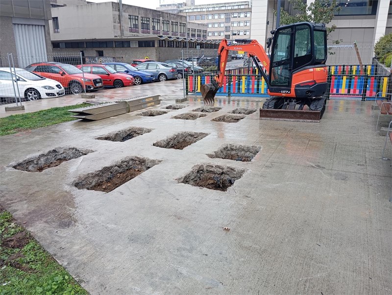 EXCAVACIÓN DE ZATAS EN HORMIGÓN ,PARQUES CALISTENIA.